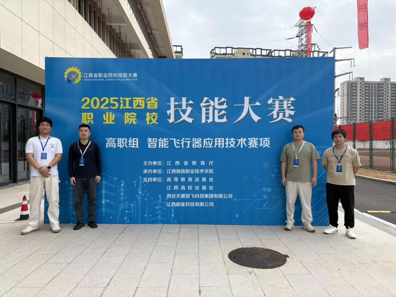 2025年11月7日至9日,2025年江西省职业院校技能大赛智能飞行器赛项在江西制造职业技术学院举行。经过激烈角逐,由我校飞行技术学院徐幸超老师和王俊鹏老师指导,2023级无人机应用技术2班熊鹰和文友义同学组成的参赛队伍,从全省27所院校中脱颖而出,荣获大赛三等奖。